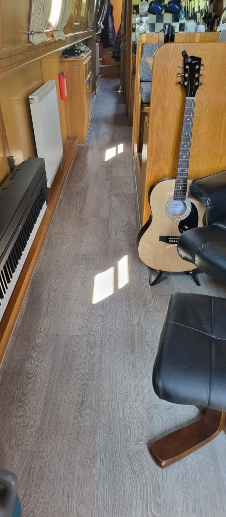 I also took time to do some work on the boat. The main thing was to get rid of the carpet. I’ve always hated it, it’s hard to keep clean and produces so much dust. Settled on a laminate (I thought I was getting vinyl but this is great). So easy to keep clean…