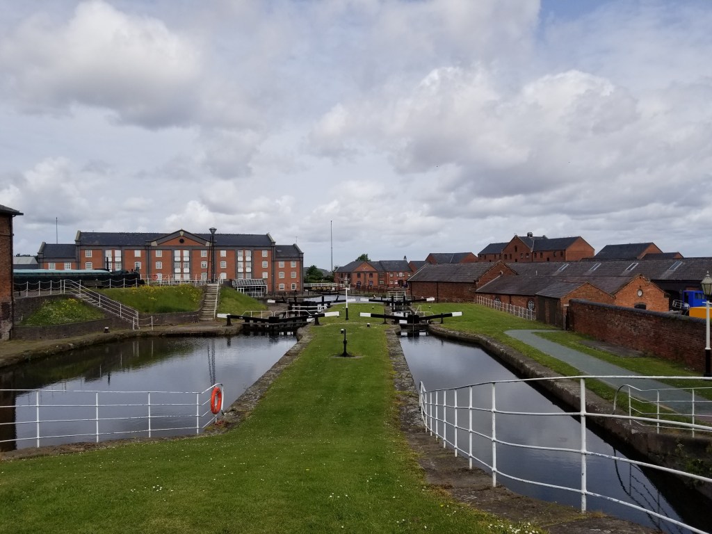 I figured that this year was a good chance to check it out. Victorian engineering is simply amazing. Built in 1875, it’s a two-caisson lift lock, used to move boats on and off the River Weaver, 50 feet below the Trent and Mersey Canal. It used water-based hydraulic rams until 1906 before corrosion caused its closure.